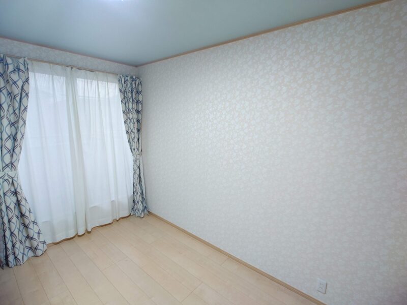 クロスは花柄とアクセントカラーを天井に。小学1年生の娘さんのチョイス。いいですね!