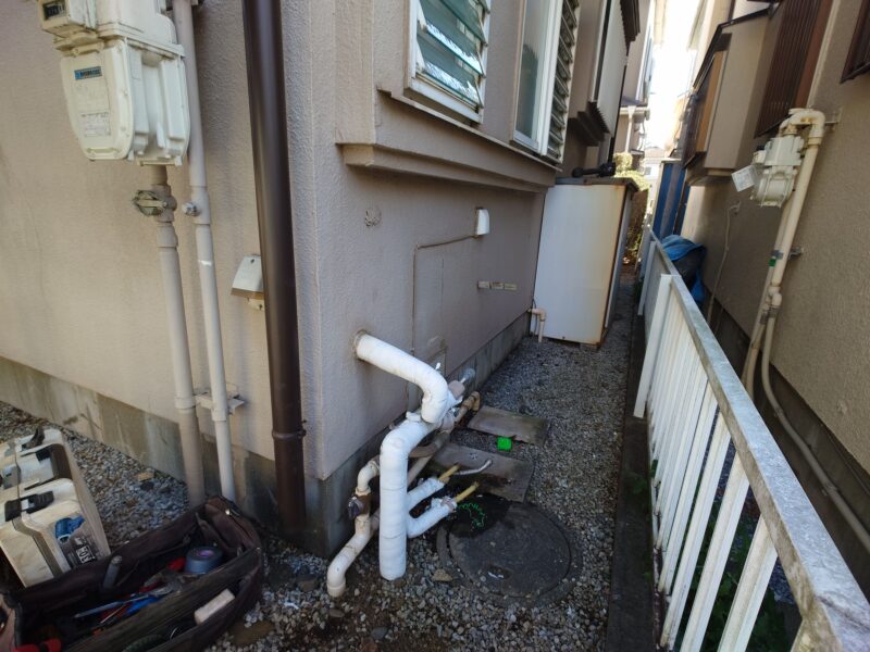 スケジュールいっぱいの中駆けつけてくれた設備屋さんのY氏の手伝いを。少し高低差があり柵から受け取った既存の給湯器は意外と重く、寒さも相まって腰をやりそうに。